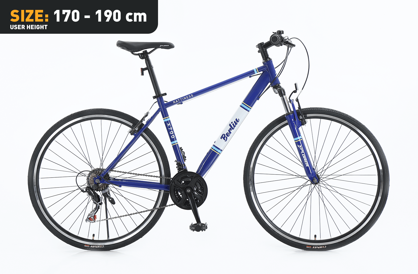 Xplorer City-Fahrrad BERLIN Blau 28" ist ein komfortables und zuverlässiges Citybike für den täglichen Gebrauch, den Weg zur Arbeit oder entspannte Fahrten durch die Stadt. Das schlichte blaue Design wirkt modern und zeitlos, während der stabile 19"-Stahlrahmen für hohe Haltbarkeit und Fahrsicherheit sorgt.