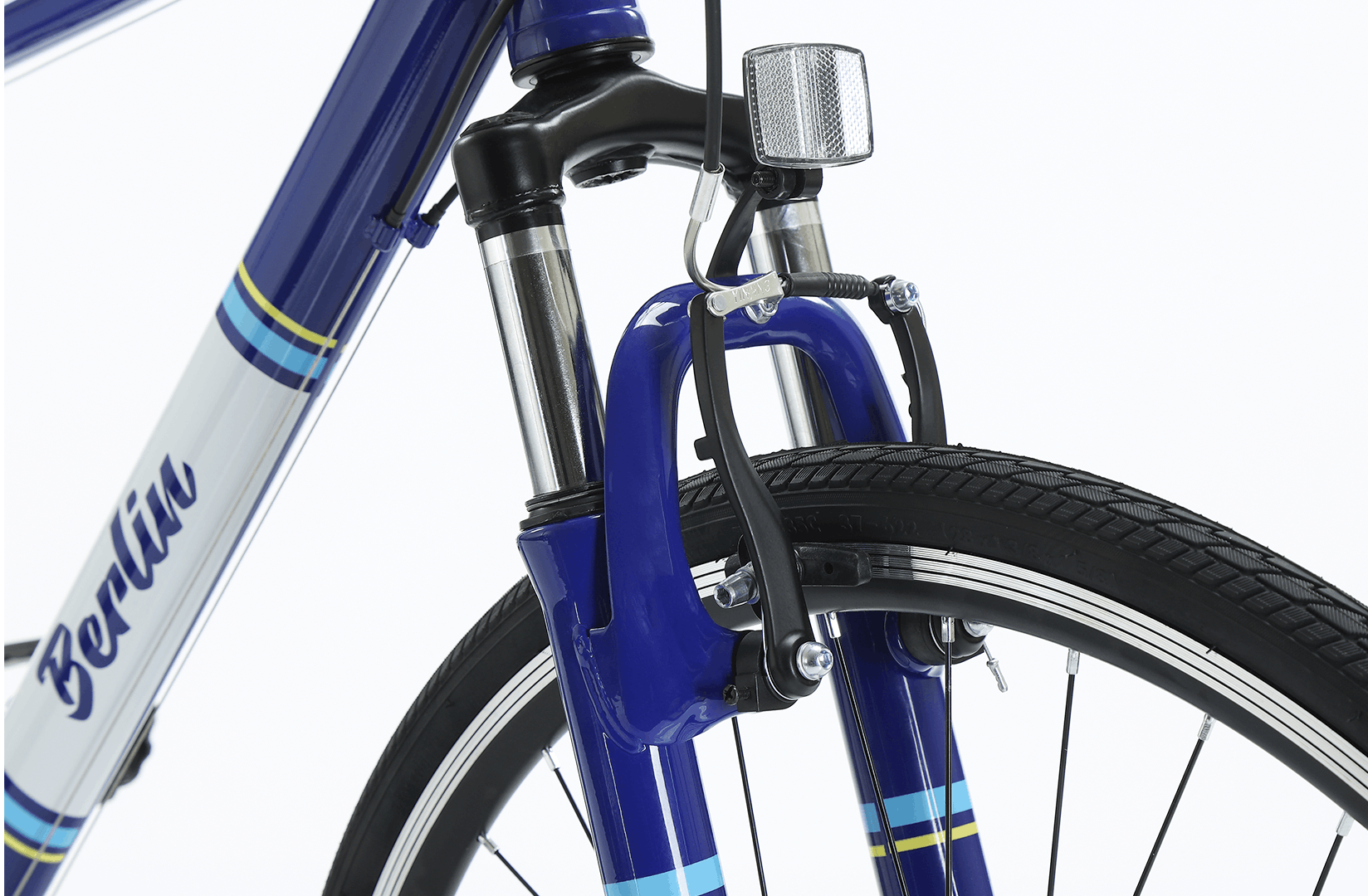 Ein gerader Stahllenker, ein bequemer MTB-Sattel sowie Pedale mit Reflektoren erhöhen Komfort und Sicherheit. Der hintere Stahlständer macht das BERLIN 28" besonders praktisch für den Alltag in der Stadt.