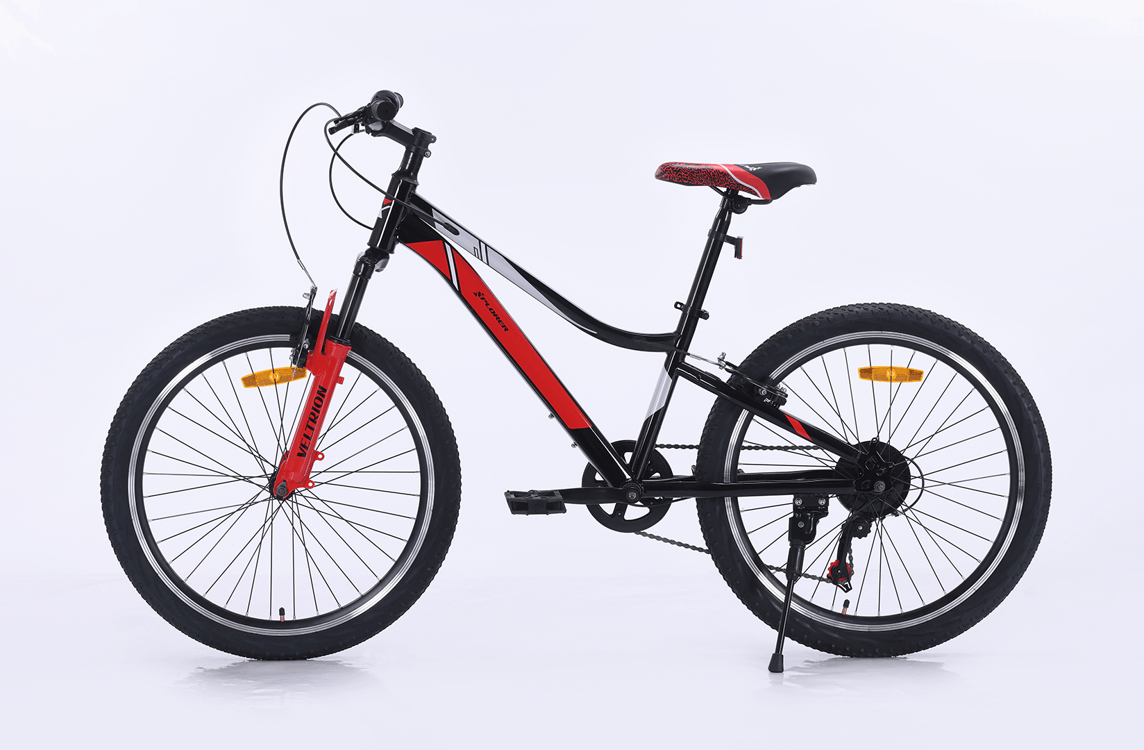 Kinderfahrrad Xplorer VELTRION Black-Red 24" ist für ältere Kinder konzipiert, die mehr Kontrolle, Tempo und Sicherheit suchen. Das sportliche schwarz-rote Design und die größeren Laufräder verleihen ihm einen echten Junior-Bike-Look.